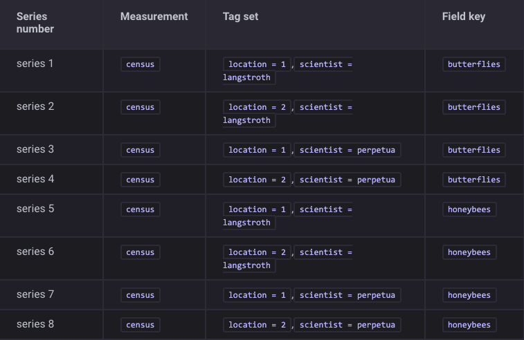 // series UUID = measurement + tag set + 魔术分隔符 + 当前迭代到的 Field key