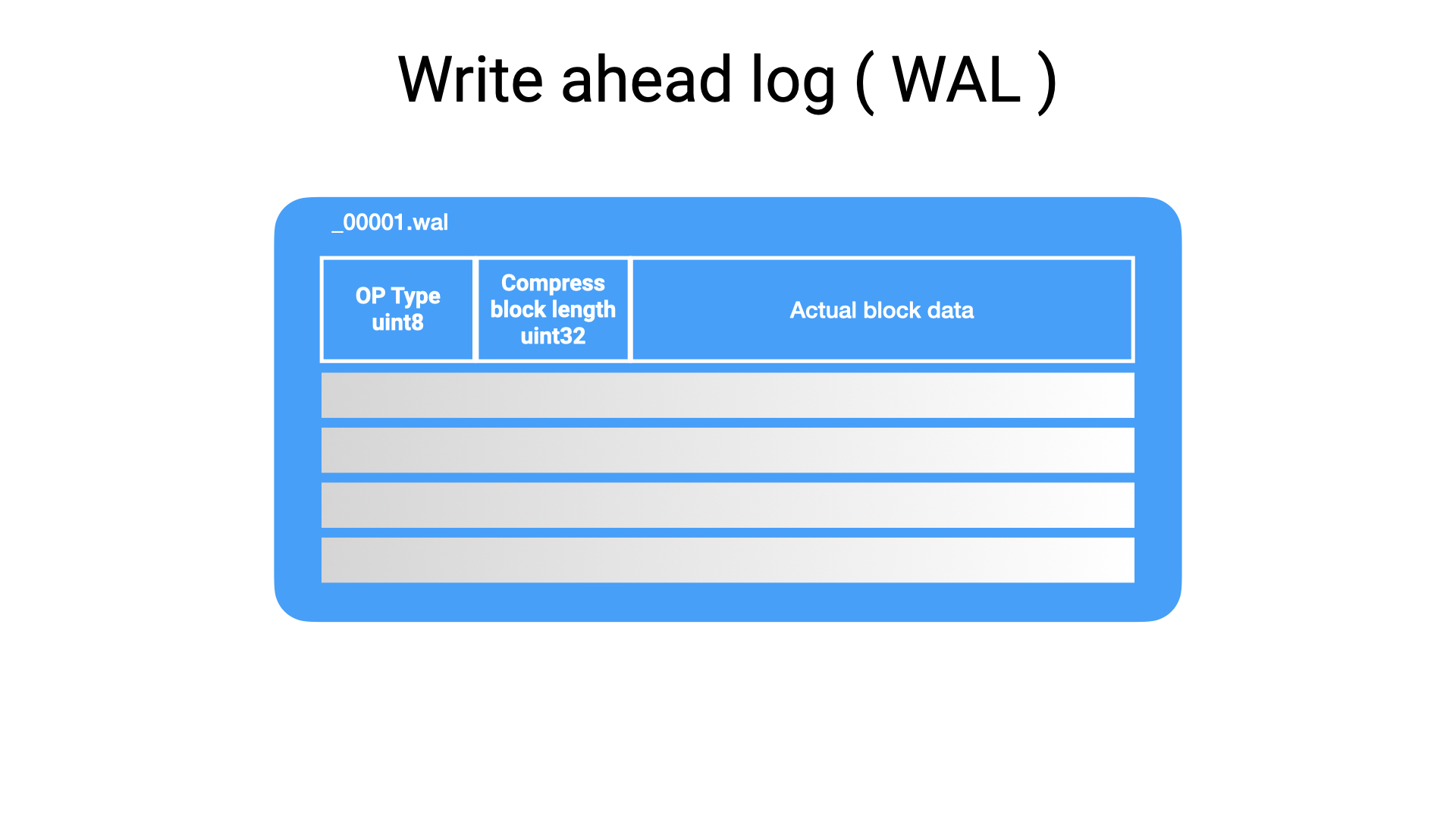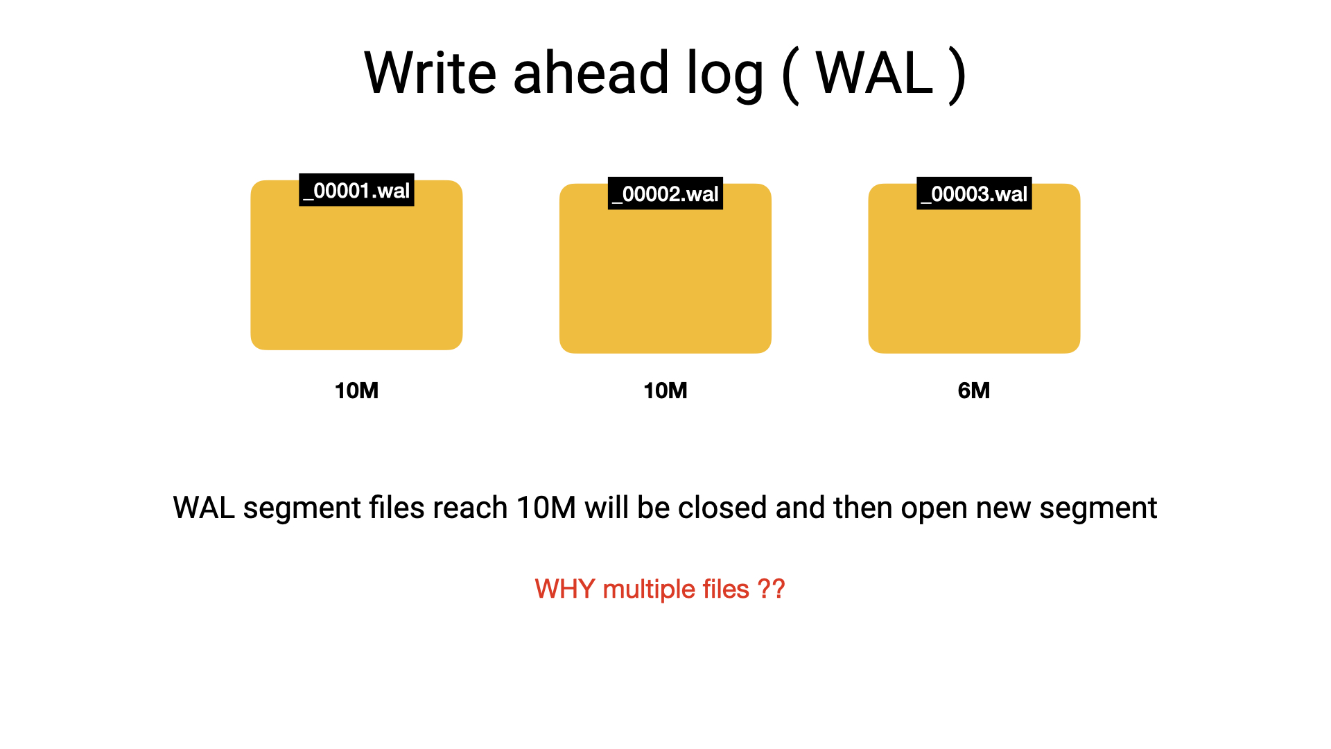 WAL 的内部是一组 segment files,使用编号进行命名,追加写入压缩的 series,当前写入的文件超过 10M 后会关闭当前文件并新建新文件接收写入的数据,图示如下: